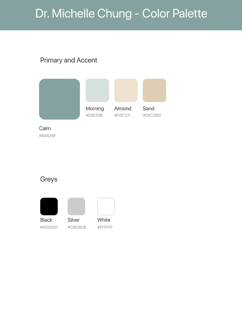 The website’s presentation was especially important to Dr. Chung, as it reflected her clinic’s rebrand. She described her desired brand identity with words like warm, soothing, and sophisticated—aiming for a comforting, relaxing tone rather than a clinical one. Together, we developed a visual style that embodied these qualities.