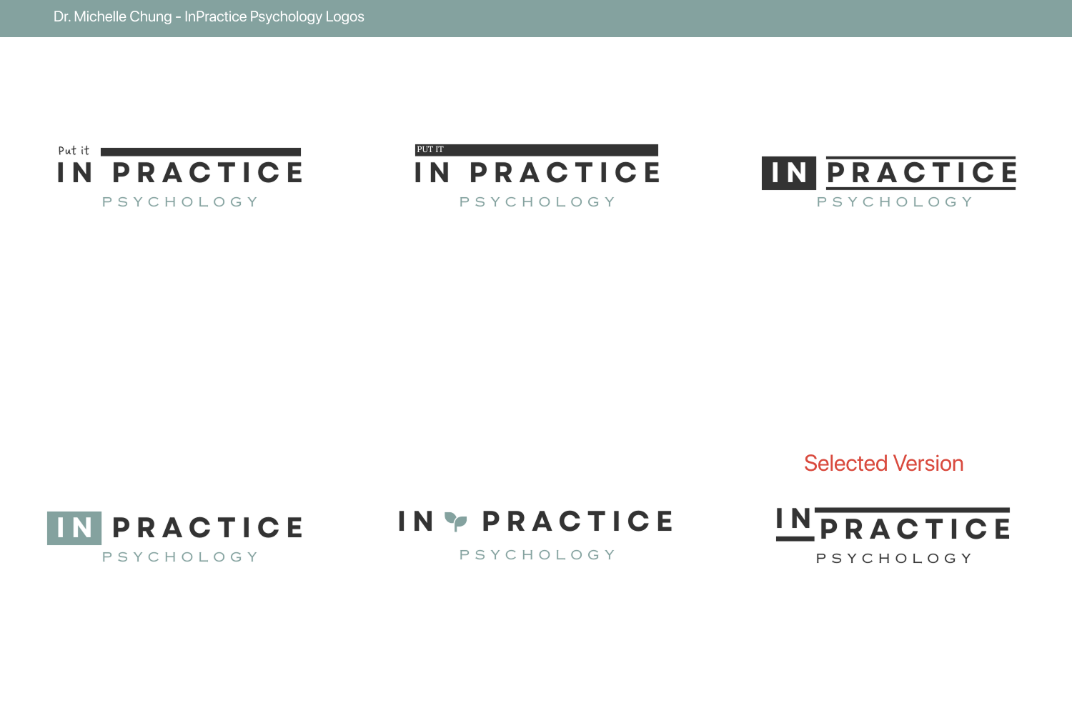 Her goal was to reflect her psychiatry thesis, which emphasized that healing comes from restoring inner balance and continuing personal growth. Rather than aiming for a fixed outcome, her philosophy focuses on equipping clients with tools for ongoing self-improvement. With this in mind, we landed on the name In-Practice Psychology—highlighting active engagement and continuous development.